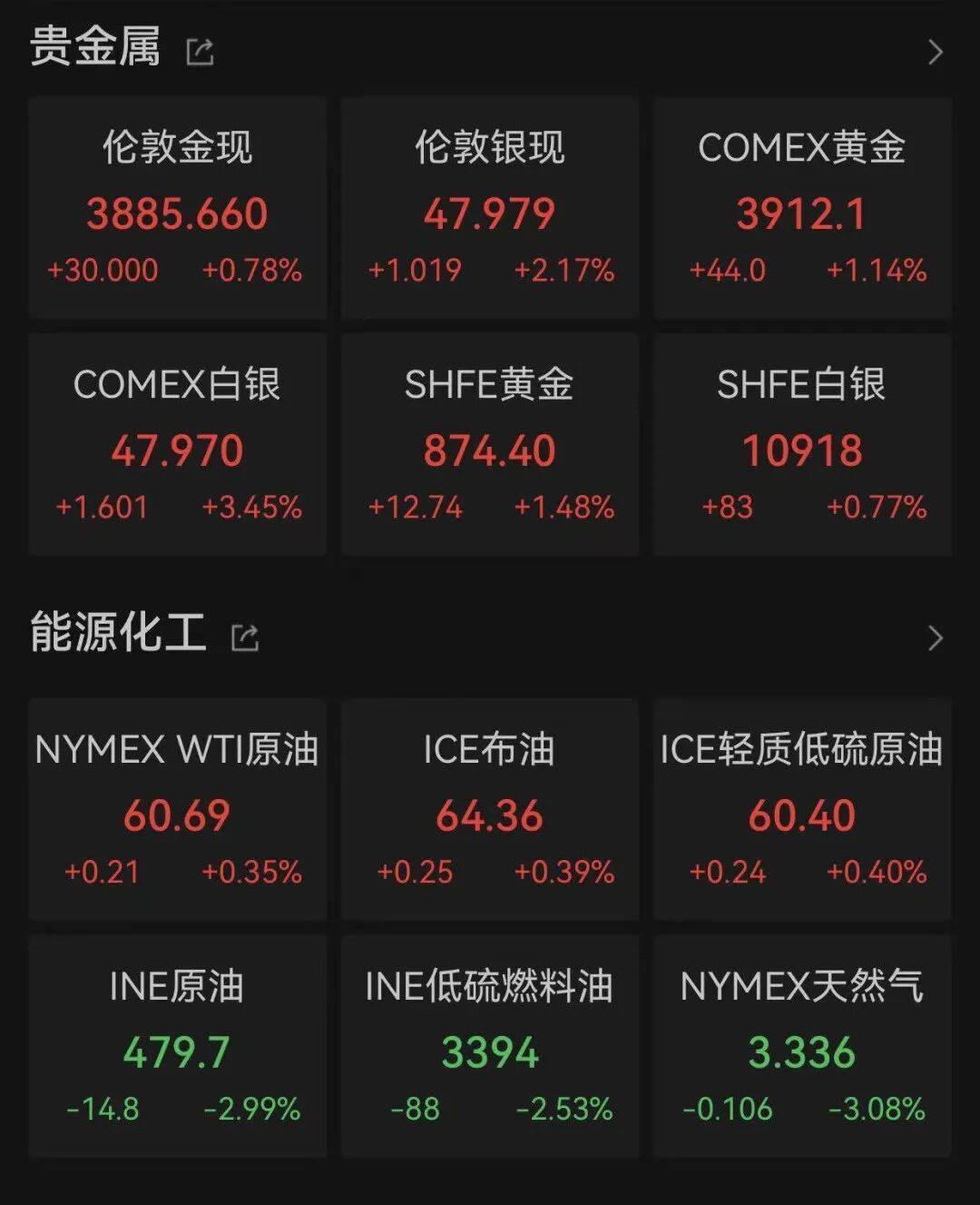 商品市场方面,贵金属期货普遍上涨,伦敦现货黄金价格创收盘历史新高。