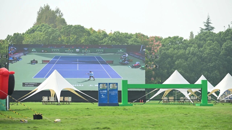 室内空间被充分拓展为“天然避暑港”。品牌天地的空调出风口挂着 “清凉驿站” 标识,球迷们在挑选赛事纪念品时便能享受凉意;美食天地里,清爽饮品与特色小食一应俱全,满足味蕾的同时补充能量。新增的 ACE 萌友天地更成 “网红清凉点”,草坪上的遮阳天幕下,观众躺坐露营椅通过大屏看直播,风里夹杂着冰饮摊位的薄荷香。