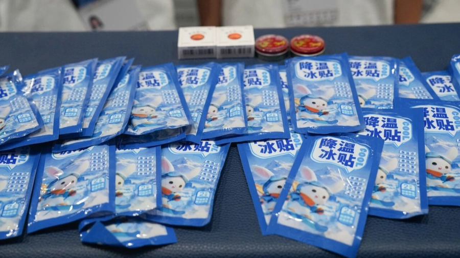 面向观众的清凉物资保障持续升级。球迷广场及中央场馆环廊(10 号玻璃门)的咨询服务中心,免费提供清凉油与冰宝贴供按需取用,10 月 5 日起更在中央场馆环廊增设冰袋领取点,傍晚时分这里仍排着领取的小队。志愿者穿梭在场馆各处,及时为老人和孩子送上降温物资,让清凉服务随人而动。