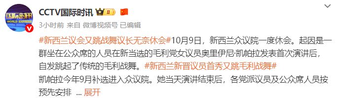 10月9日,新西兰众议院一度休会。起因是一群坐在公众席的人员在新当选的毛利党女议员奥里伊尼·凯帕拉发表首次演讲后,自发跳起了传统的毛利战舞。